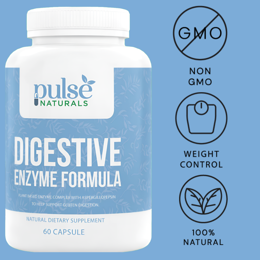 Reduced Bloating and Gas: Say goodbye to that uncomfortable, bloated feeling. Pulse Naturals Digestive Enzyme helps reduce the gas and bloating that often come from rich meals, heavy foods, or food sensitivities.