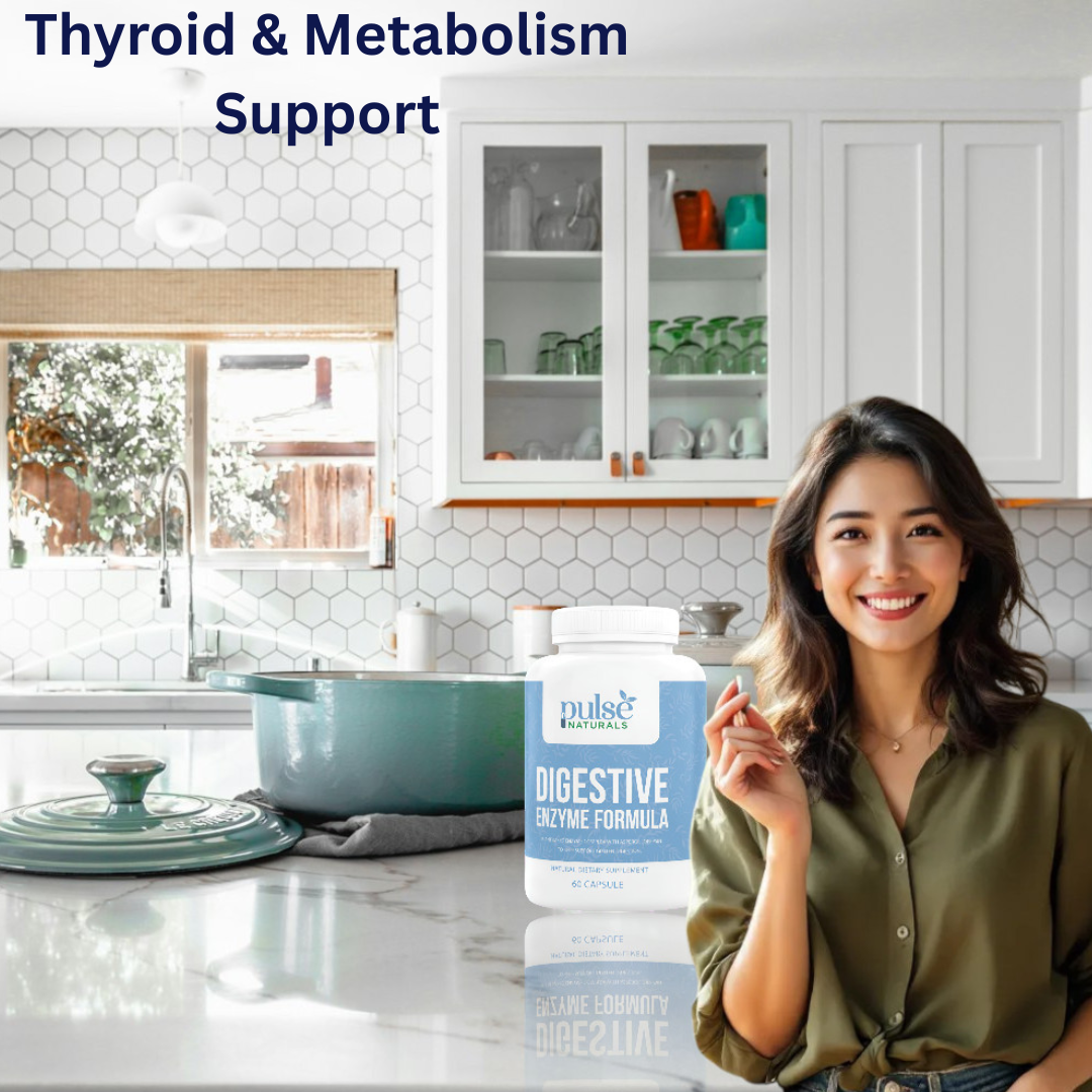Pulse Natural Digestive Enzymes this plant-based supplement, enhances nutrient absorption, is aimed at improving thyroid health, and provides more energy after every meal.